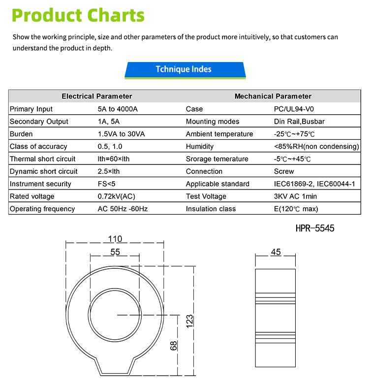 - Compliance with International Standards: The product design complies with standards such as IEC 61869-2, EN 60044-1, VDE 0414-44-1, and GB 1208-2006.