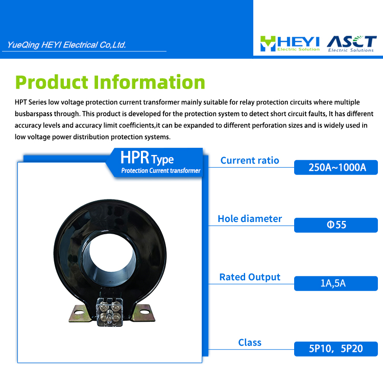 The HPR Series Low-Voltage Protection Current Transformers are specifically designed for multi-busbar relay protection circuits and are widely utilized in low-voltage power distribution protection systems. These products effectively detect short-circuit faults and, when used in conjunction with protective relays or motor protection units, ensure the safe and stable operation of the power system.