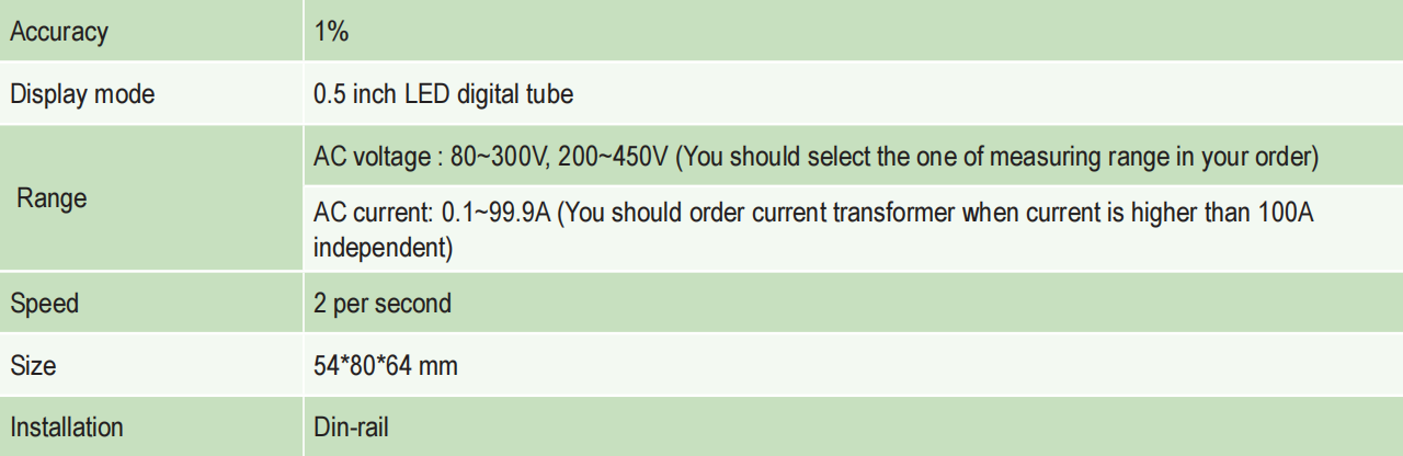 The K52-2042 is a multi-function DIN-rail meter, part of the KDM1 series. It accurately monitors voltage (50-500V) and current (1-100A) with ±2% accuracy, providing reliable measurement for various electrical system applications.