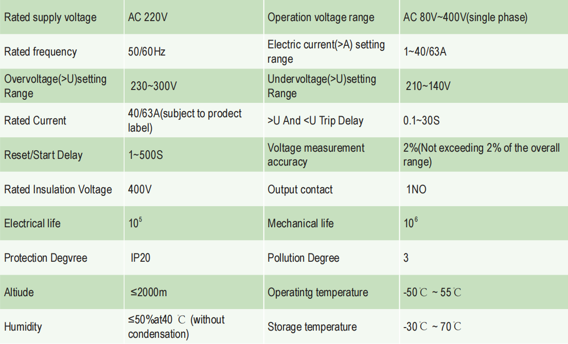 This series of products adopts modular design, with fast response speed (protection action time as short as 0.1S), high measurement accuracy (voltage error ≤ 2%), flexible settings, etc., which can effectively prevent equipment damage caused by abnormal grid voltage and ensure electrical safety. All models have power-off memory function, and the set parameters can still be maintained after power-off.