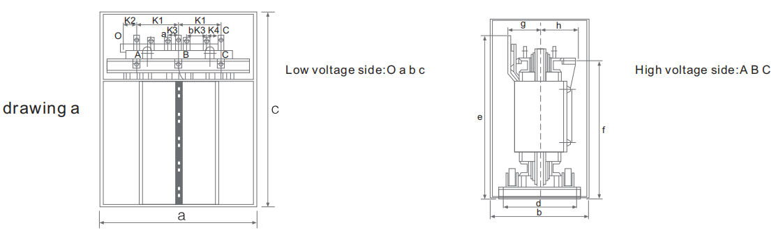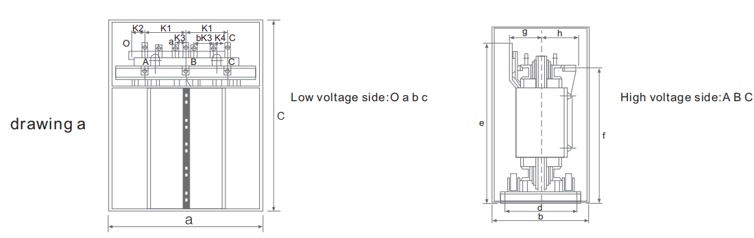 | Rate Volatage: | 10、10.5、11、6、6.3、6.6kV | vector group | Yyn0.Dyn11 | Insulation level | LI75AC35/AC5 | ||||||||||||